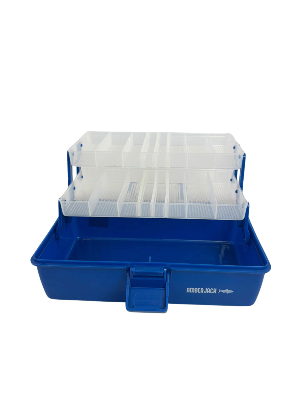Caja organizadora Amberjack B001, ideal para pescadores que buscan mantener todo su equipo ordenado y accesible. Gracias a su diseño compacto y resistente, es perfecta para transportar anzuelos, señuelos, esmerillones, plomadas y pequeños accesorios de pesca o ferretería.