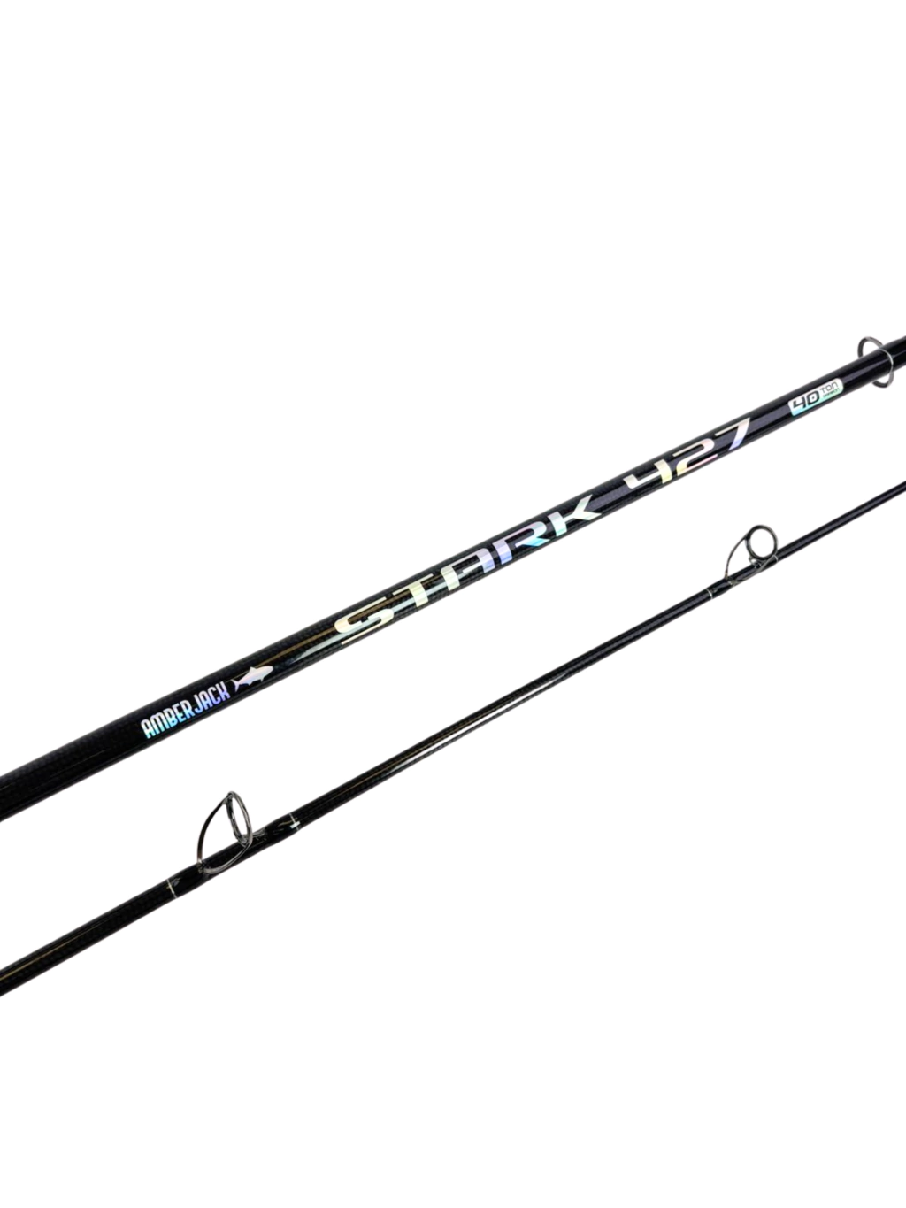 La Amberjack Stark 427 es una caña armada de alta gama, diseñada en grafito 40T con nanoresina para máxima potencia, ligereza y reactividad. Ideal para alcanzar grandes distancias en pesca de costa.