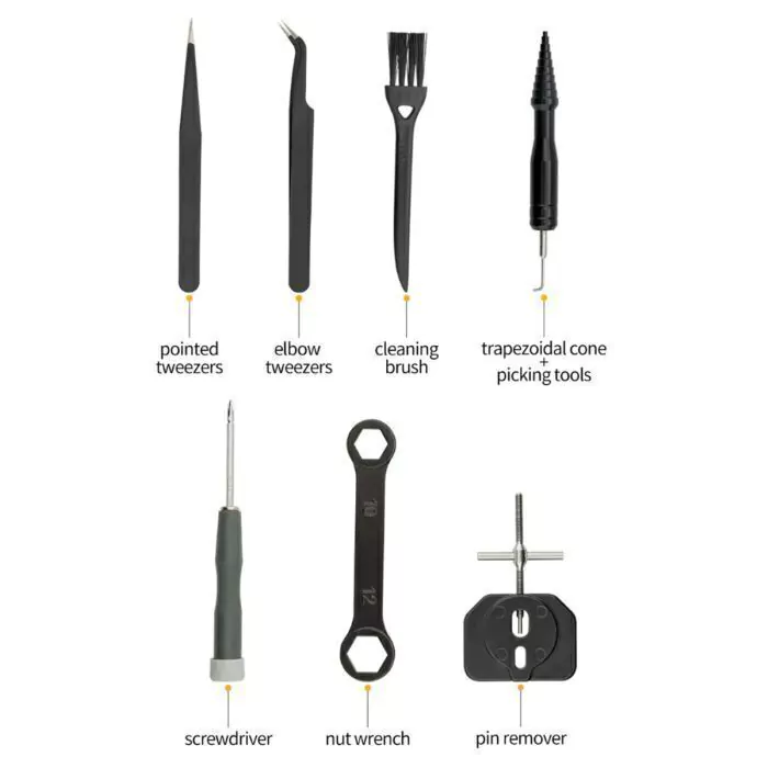 🔹 Pinzas y extractores, ideales para manipular piezas pequeñas
