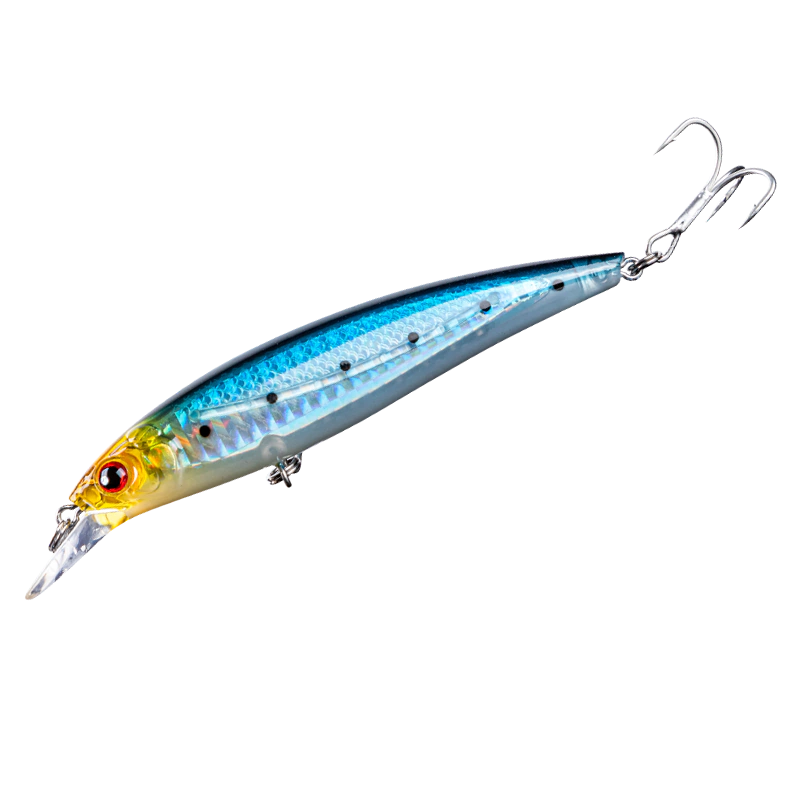🔹 Atractivo Visual: Su diseño incluye escalas prominentes y una línea lateral destacada, además de un foil holográfico interno que maximiza el destello y la atracción visual. Los ojos holográficos en 3D añaden un toque realista, aumentando las posibilidades de captura.